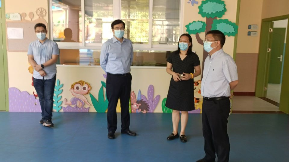 李金林(左二)帶隊檢查幼兒園安全工作。 米華文攝