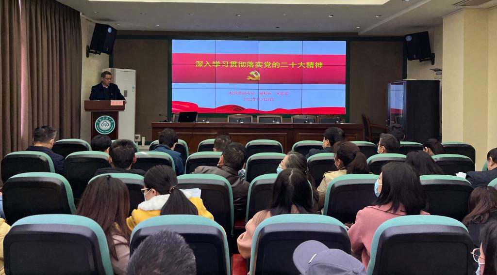 宋發軍從黨的二十大的主題及主要成果、過去5年的工作和新時代10年的偉大變革、馬克思主義中國化時代化、中國式現代化、全面建設社會主義現代化國家的目標任務、堅持黨的全面領導和全面從嚴治黨、應對風險挑戰等7個方面對黨的二十大報告主要內容進行了深入淺出的分析和講解。他指出,中國共產黨已走過百年奮斗歷程,立志于中華民族千秋偉業,責任無比重大,使命無上光榮;黨的二十大報告是馬克思主義中國化時代化的最新成果,全體師生要深入學習、深刻領悟、深度踐行二十大報告的精神要義,牢牢把握好“兩個確立”的重要意義,提高政治判斷力、政治領悟力、政治執行力,堅定不移在思想上政治上行動上同以習近平同志為核心的黨中央保持高度一致,不斷團結奮斗,奮發作為;要堅持和發展馬克思主義必須同中國具體實際相結合、必須同中華優秀傳統文化相結合,著眼解決新時代改革開放和社會主義現代化建設的實際問題,堅定歷史自信、文化自信,古為今用、推陳出新。