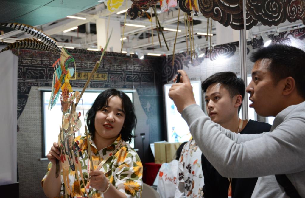 展演中,我校師生展示了工作坊創作的皮影劇——《哪吒傳奇》。不時有觀眾來到工作坊操作臺前就坐,在剪影、上色、綴結等環節中體驗皮影創作的過程。還有觀眾通過電腦體驗工作坊開發的虛擬仿真實驗環節,對皮影雕刻和操縱表演進行模擬操作。工作坊指導教師潘俊、王海濤全程進行現場指導,學生成員董天方、陳羽佳、王力笠、方俊婕、肖琴、李會玲、朱靜怡、張瀚分兩批先后赴成都參加展演。活動中,潘俊老師、董天方同學先后接受了媒體采訪。