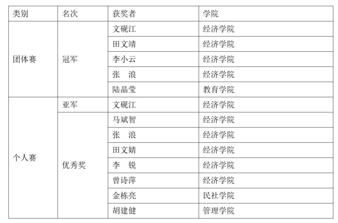 團體賽冠軍成員、個人賽亞軍、經濟學院文硯江同學作為獲獎代表分享了參賽感受。他說:“學科競賽不僅考察了我們對專業知識的掌握度,還鍛煉了學科思維能力,拓展了學科素養。我們互相幫助、互相學習,是團隊的力量讓我們收獲團體賽冠軍。感謝共同進步的隊友。”