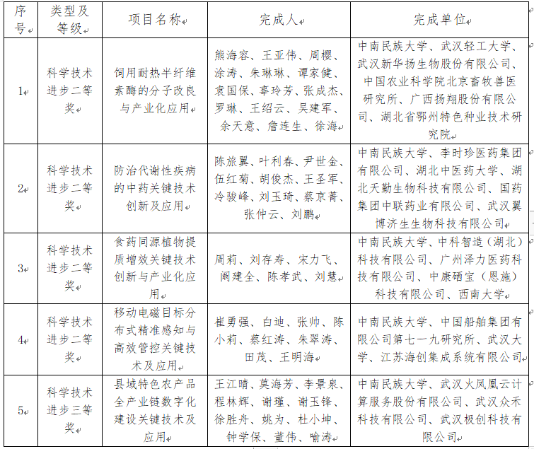 3月16日上午,湖北省科技創(chuàng)新大會(huì)在武漢洪山禮堂隆重舉行。湖北省委書記王蒙徽,省委副書記、省長王忠林出席會(huì)議并講話。會(huì)上宣讀了《湖北省人民政府關(guān)于2022年度湖北省科學(xué)技術(shù)獎(jiǎng)勵(lì)的決定》,共有297項(xiàng)科技成果(人)和15家企業(yè)獲獎(jiǎng)。我校5個(gè)科研團(tuán)隊(duì)牽頭完成的科技成果,榮獲湖北省科技進(jìn)步二等獎(jiǎng)4項(xiàng),三等獎(jiǎng)1項(xiàng)。
