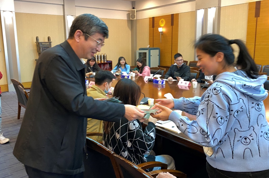 座談會后,邊境向同學們贈送了紀念書簽,并與大家在“篤信好學、自然寬和”校訓石前合影留念,留下了美好的記憶。