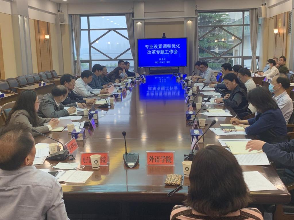 4月13日下午,學校專業調整優化改革工作專題研討會在學術交流中心召開。副校長杜冬云,相關部門負責人,各學院分管教學副院長參加會議。會議由杜冬云主持。