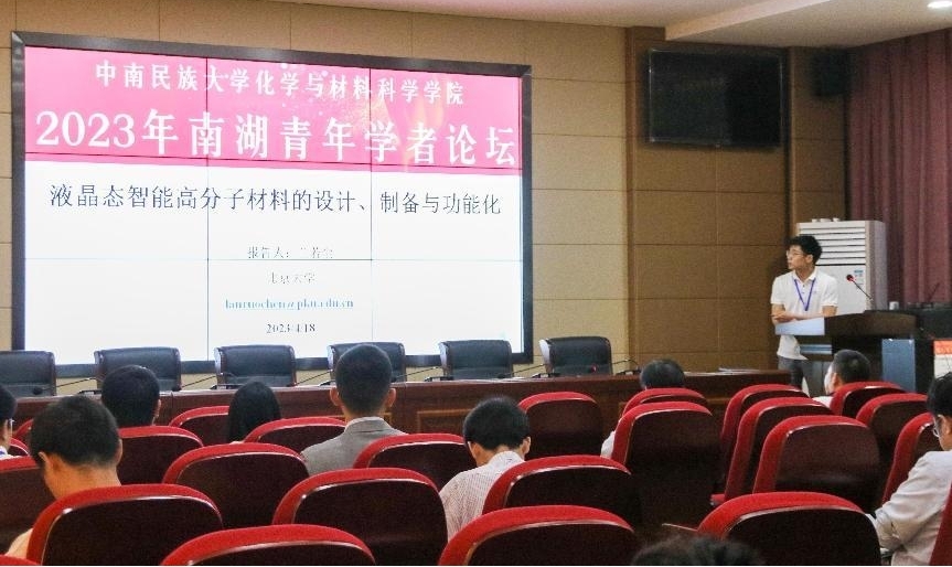 4月18日上午,化材學院2023年南湖青年學者論壇在7號教學樓舉行。此次論壇采用線上線下相結合的形式,共有12名青年學者帶來了精彩的學術報告。校黨委書記邊境,化材學院黨委書記鄧行、院長張道洪、藥學院院長付海燕,化材學院領導班子其他成員、學術委員會成員,校級教學督導等參加了論壇開幕式。鄧行主持開幕式。