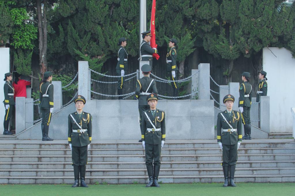 我校國旗儀仗隊舉行升旗儀式。戴俊偉 攝
