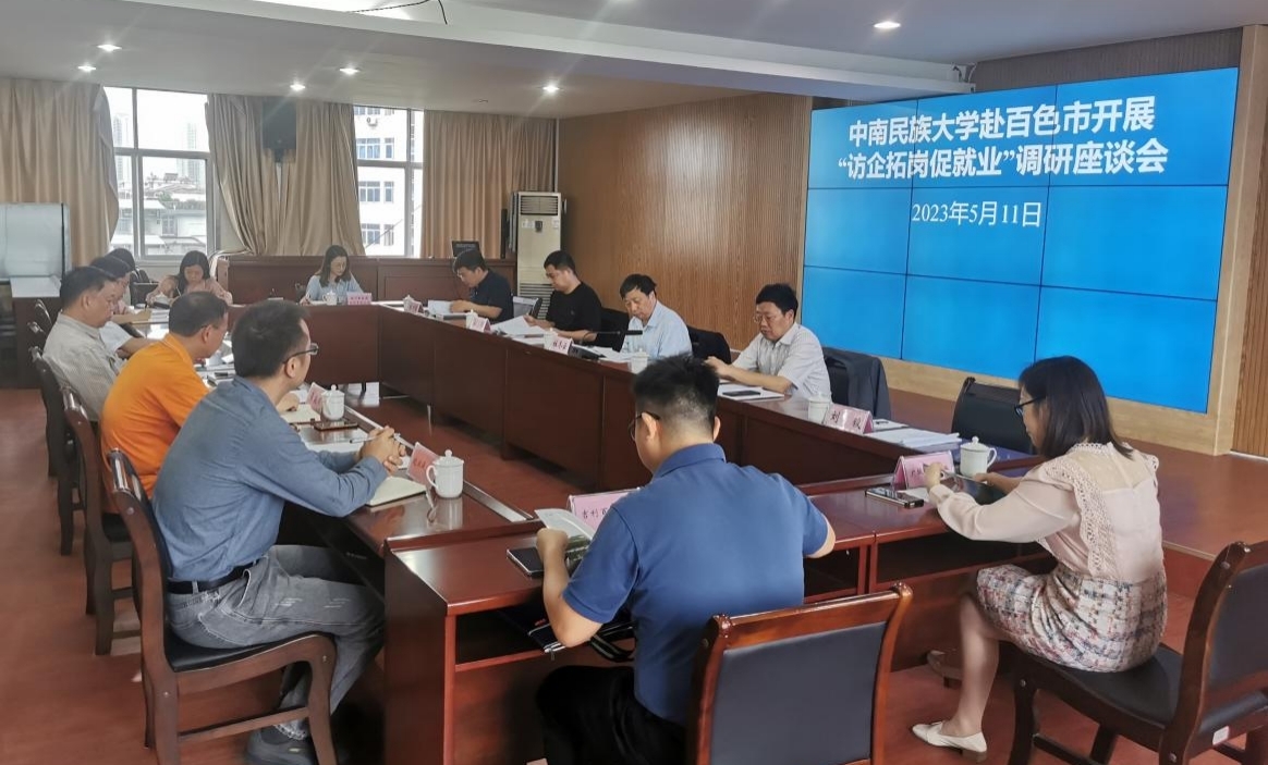在百色市,杜冬云一行與該市政府二級巡視員黃廷文、市人社局局長凌玉強及百色市相關行業(yè)、企業(yè)負責人進行座談交流。雙方圍繞畢業(yè)生供需交流、校地合作、校企合作等探討了深化合作的方向。學校與裕寧新能源有限公司、廣投銀海鋁業(yè)有限公司、吉利百礦集團有限公司、靖西湘潭電化科技有限公司就畢業(yè)生就業(yè)、校企科研合作、共建實習實訓基地方面達成了合作意向。