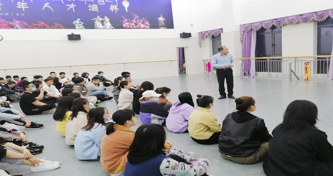 這是我校本學期第一次線下藝術思政課上的場景。該課程由我校音樂舞蹈學院、馬克思主義學院與武漢大學馬克思主義學院的教師共同授課,教學團隊覆蓋思政、音樂、舞蹈3個學科,力求通過藝術生動的形式教育引導同學們立足時代、扎根人民、深入生活,提高審美和人文素養,增強文化自信。本學期的藝術思政課程采取全新的教育教學模式,由面授教學改為線上線下混合式課堂教學,即單周為線上課程,雙周為線下課程。這種新的教學形式使學生能在線上課堂初步了解該課程思想政治理論基礎,初步感受音樂、舞蹈、表演等藝術魅力的基礎上,帶著問題和思考積極參與線下課堂,在音樂舞蹈等專業老師的帶領下一起互動、學習,更好地理解思想政治理論、體會藝術作品豐富的感染力,使思想政治教育潛移默化、入腦入心。