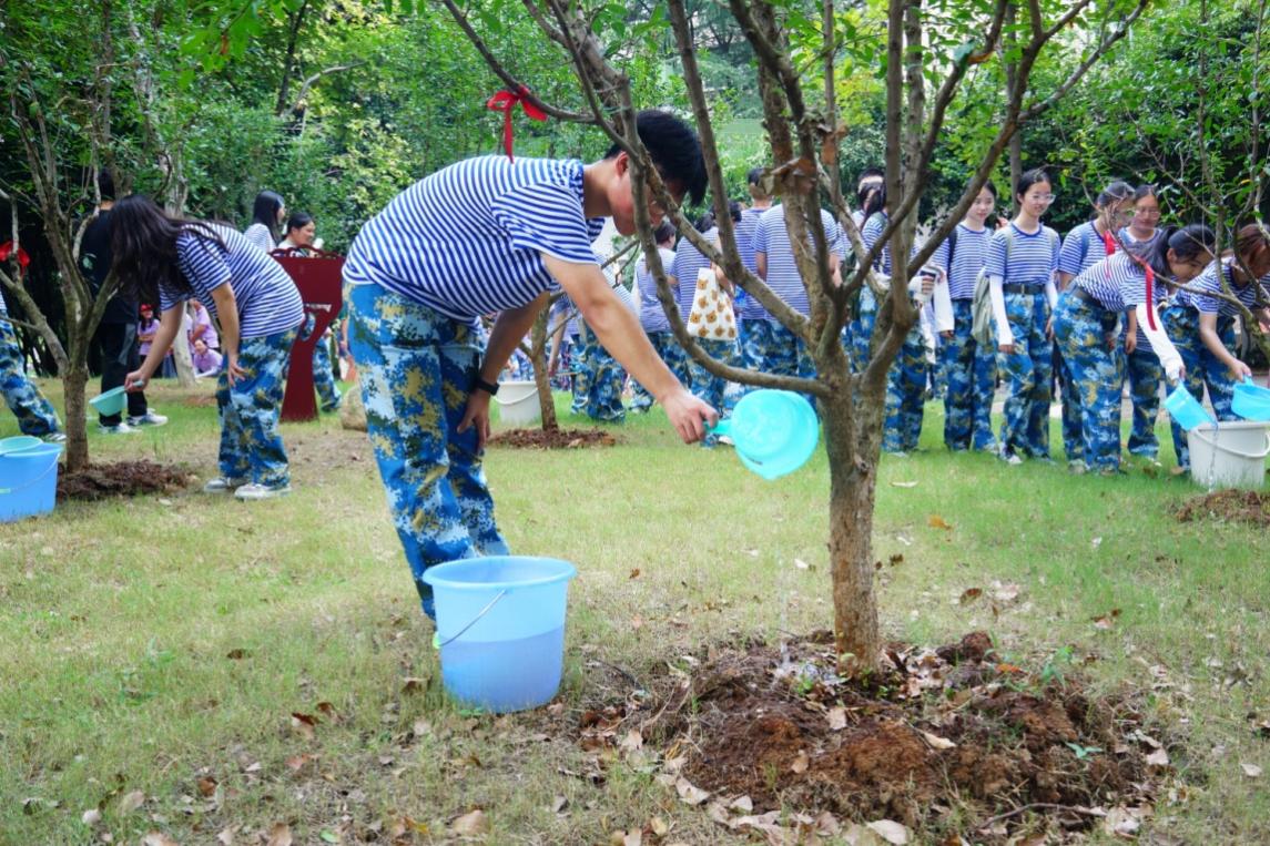 同學們依次為石榴樹澆水。 羅宇晨攝
