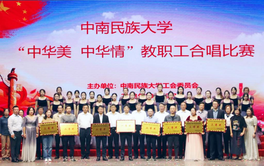 “愛我中華之美,是愛這片土地上孕育出的璀璨文明,愛她一眼萬里的江山如畫,更愛她歷經70多年滄海桑田、戮力圖強的中國夢……此時此刻,他們將用深情的演唱深情告白偉大祖國,用嘹亮的歌聲唱響中南民大人對新時代美好生活的向往和期待!”10月19日下午,由我校工會主辦的“中華美 中華情”教職工合唱比賽在大禮堂舉行。來自各學院,教輔、直屬、附屬機構,機關共30個工會參加比賽和表演。全體在校校領導、各單位負責人、全體教職工和各學院學生代表到場觀看。比賽由馬克思主義學院高俊山老師、外語學院張佩老師主持。