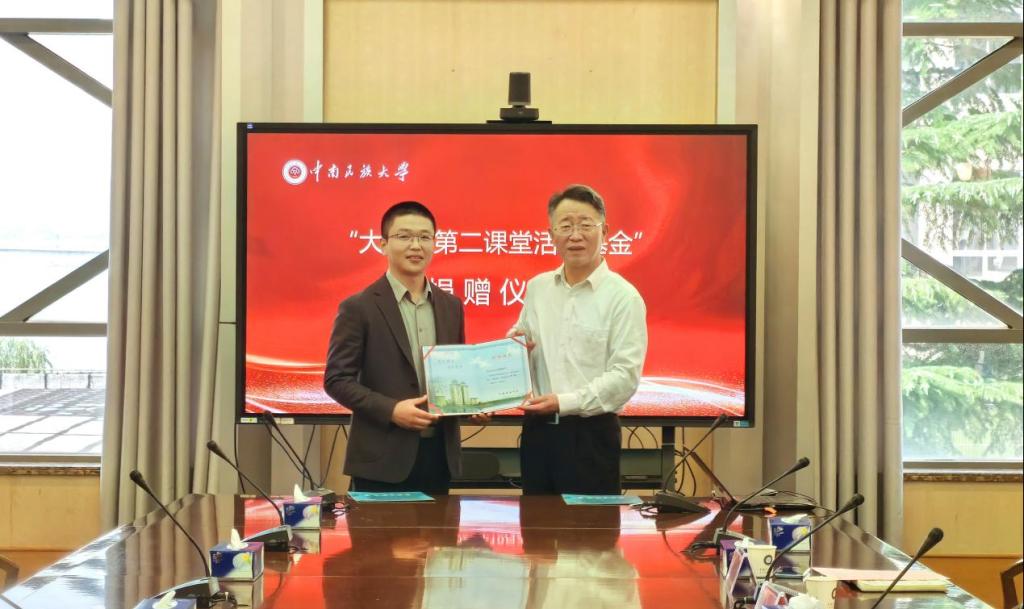 白江源代表學校接受捐贈,并向武漢樂友文化傳媒有限公司頒發捐贈證書。