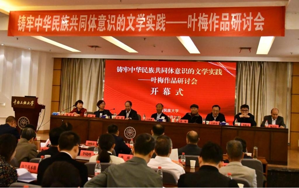 段超致歡迎辭。他介紹了我校將鑄牢中華民族共同體意識融入辦學(xué)治校、教學(xué)育人的全過程,以及在促進(jìn)民族團(tuán)結(jié)進(jìn)步和當(dāng)代民族文學(xué)研究等方面的突出成就。白庚勝認(rèn)為,葉梅是文學(xué)創(chuàng)作的多面手,在凝聚、培養(yǎng)民族作家等方面作出了巨大貢獻(xiàn)。丹增稱贊該會是一次鑄牢中華民族共同體意識文學(xué)實(shí)踐的盛會。古新功在致辭中肯定了當(dāng)代民族作家研究中心在民族作家研究、擴(kuò)大民族作家影響力、提升民族作家創(chuàng)作水平等方面的突出成績。我校文學(xué)與新聞傳播學(xué)院院長陶喜紅從傳播理念的堅守、傳播生態(tài)的形成和傳播力的提升等方面分析了葉梅作品中的傳播觀念。