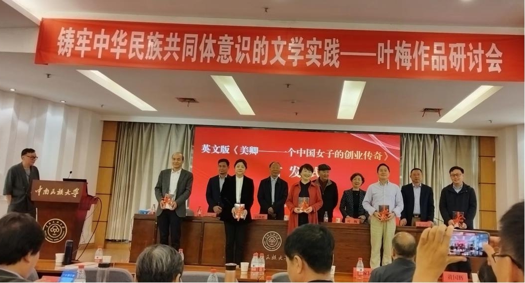大會期間進(jìn)行了葉梅報告文學(xué)英文版《美卿——一個中國女子的創(chuàng)業(yè)傳奇》的首發(fā)式,首發(fā)式由《中國文藝家》雜志社執(zhí)行社長向陽主持。