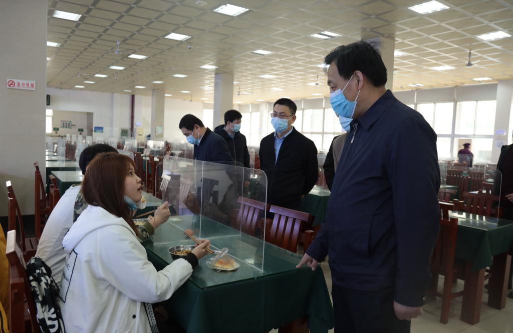 督察組一行先后視察了我校學生食堂、學生宿舍以及校內醫學觀察點等場所,就校園學習、生活等問題與學生進行了交流。