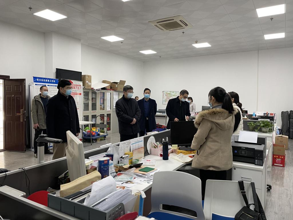 在民大社區(qū)辦公大樓,下沉黨員認(rèn)真開展志愿服務(wù)工作。校領(lǐng)導(dǎo)一行與下沉黨員逐個交流,了解假期社區(qū)疫情防控工作開展情況。