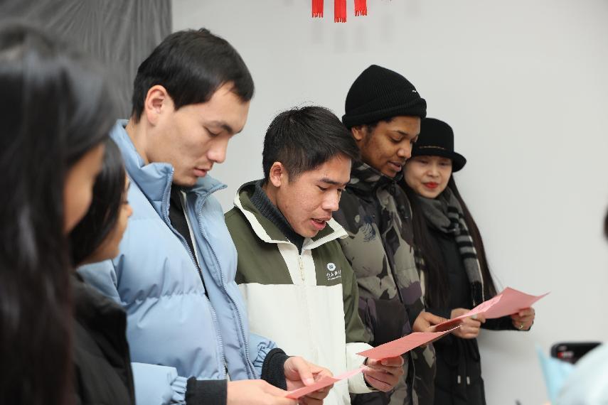 2月3日上午,國際合作與交流處、黨委學生工作部聯合舉辦了“同享民俗文化樂趣 喜迎龍年新春大吉”迎新年主題活動。來自巴基斯坦、越南、印度尼西亞、柬埔寨、蘇丹、盧旺達等12個國家的來華留學生在國際教育學院開展聯歡活動,共同感受中國傳統佳節的文化內涵,迎接中國農歷新年的到來。
