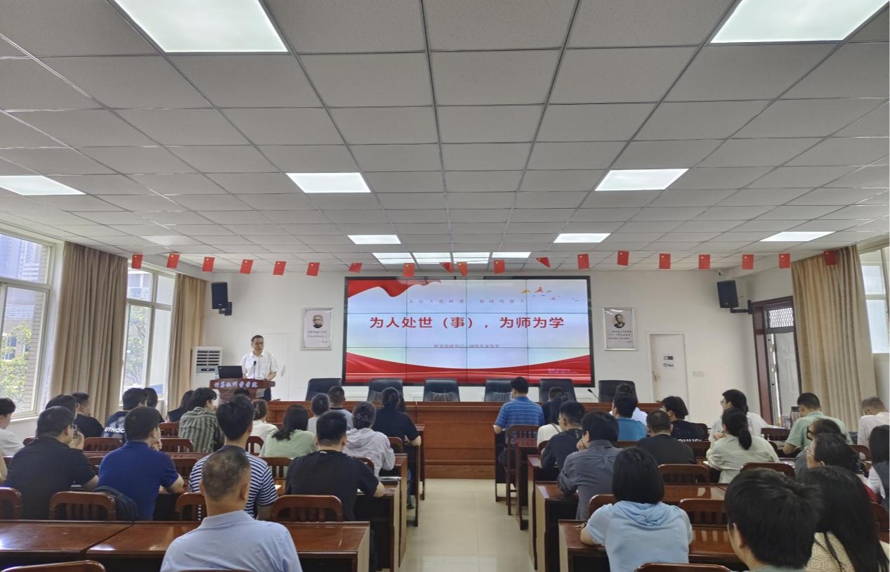 宋發軍結合自己多年來的工作體會、生活感悟和真實故事,生動闡述了為人、為師、為學的道理。他指出,做人要忠誠老實、工作要團結協作、處事要戒急用忍,生活要嚴謹、作風要正派、為人要正直。作為一名教育工作者,要努力做有理想信念、有道德情操、有扎實學識、有仁愛之心的“四有”好老師。他鼓勵廣大教職員工要樹立遠大理想,以高遠的歷史站位、寬廣的眼界視野和深邃的戰略眼光,成為教書育人的“大先生”。