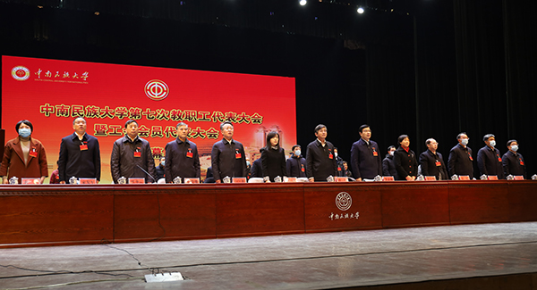 校黨委副書記、副校長、校工會主席宋發軍以《凝心聚力 團結奮進 為建成現代化高水平民族大學貢獻力量》為題作工會工作報告。報告回顧了第六屆工會委員會5年來的工作,提出了今后5年工會工作的努力方向:大力推進凝心聚力工程,引領教職工聽黨話、跟黨走;深入實施維權幫扶工程,更好滿足教職工對美好生活的向往;扎實開展固本強基工程,不斷增強工會組織的吸引力和影響力。