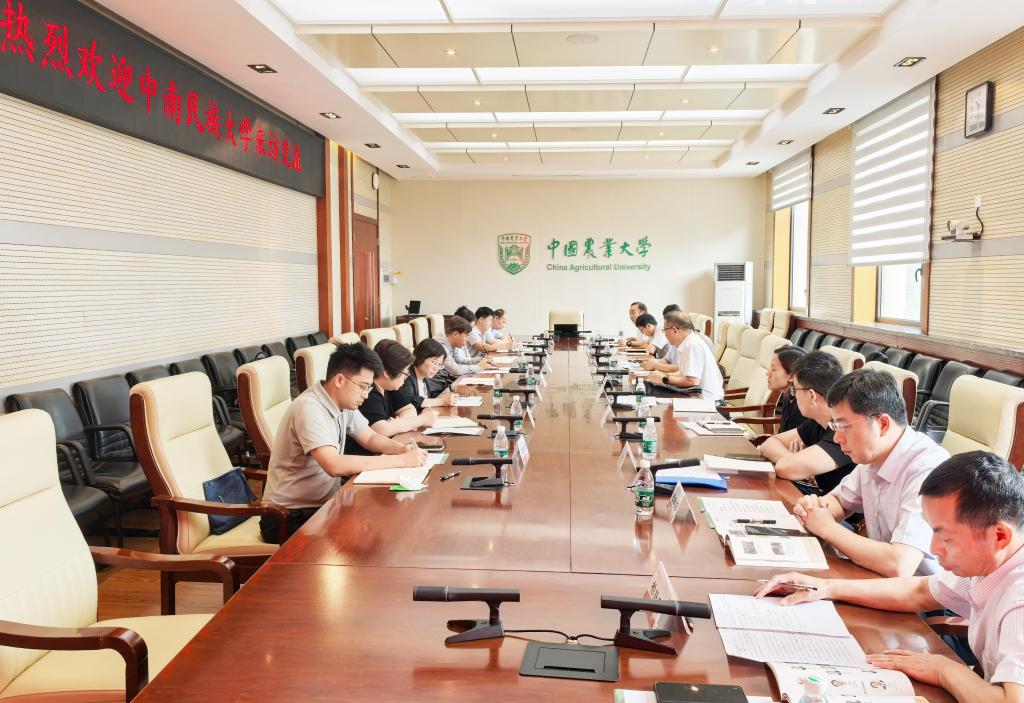 中國農(nóng)業(yè)大學(xué)黨委常委、副校長、本科生院院長林萬龍因參加教育部有關(guān)會(huì)議,委托本科生院常務(wù)副院長曹志軍主持座談會(huì)。本科生院綜合處、培養(yǎng)處、教學(xué)運(yùn)行處,研究生院培養(yǎng)處,涿州教學(xué)實(shí)驗(yàn)場,動(dòng)物科學(xué)技術(shù)學(xué)院負(fù)責(zé)人及有關(guān)專家參加座談交流。曹志軍熱烈歡迎我校前來調(diào)研交流,詳細(xì)介紹了中國農(nóng)業(yè)大學(xué)的基本情況、本科生院整體布局和教育教學(xué)改革舉措。宋發(fā)軍表示,中國農(nóng)業(yè)大學(xué)是建設(shè)世界一流農(nóng)業(yè)大學(xué)的領(lǐng)軍者,生物學(xué)、食品科學(xué)與工程等都是一流學(xué)科。中南民族大學(xué)正在大力發(fā)展理工農(nóng)醫(yī)類學(xué)科專業(yè),亟需得到中國農(nóng)業(yè)大學(xué)全方位的支持和幫助。參會(huì)人員就師生訪學(xué)、人才培養(yǎng)、學(xué)科專業(yè)建設(shè)、科技小院建設(shè)、博士后引育、優(yōu)質(zhì)課程和勞動(dòng)教育實(shí)踐基地共享等方面開展深入交流討論。會(huì)議現(xiàn)場氣氛熱烈,大家踴躍發(fā)言,就進(jìn)一步深入交流合作的事項(xiàng)達(dá)成共識(shí),商定了下一步工作的時(shí)間安排。