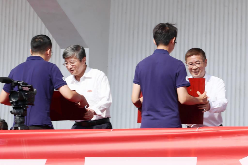 隨后,校黨委副書記、校長劉義向軍訓(xùn)團(tuán)贈送軍訓(xùn)紀(jì)念錦旗,陸軍工程大學(xué)軍械士官學(xué)校大校副校長程志勇接旗。
