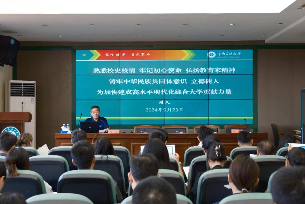 此次培訓采取線上線下相結合形式開展,培訓以鑄牢中華民族共同體意識、樹立正確民族觀、弘揚教育家精神、提升師德師風素養、創新教育教學理念、增強教育教學能力、掌握現代教育技術、提高教書育人本領為重點。線下培訓階段,校黨委副書記、校長劉義講授了第一課,全面回顧了學校發展的“四個階段”與“四次轉型”,詳細闡述了學校的辦學定位、辦學特色、面臨形勢和發展思路。他特別強調,教師應以鑄牢中華民族共同體意識為主線,堅決扛起立德樹人的神圣使命;立足本職,切實踐行教育家精神;敢為人先,大力弘揚創新精神,為推動學校轉型升級、加快建成高水平現代化綜合大學作出自己的貢獻。