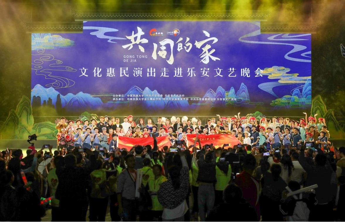 作為主題活動的重要內容,21日晚,由我校與中共樂安縣委、樂安縣人民政府共同舉辦,我校音樂舞蹈學院承辦的“共同的家—文化惠民演出走進樂安”文藝晚會在樂安縣四九廣場舉行。晚會現場氣氛熱烈,線上線下觀眾同步觀看者逾千萬,為當地帶去了一場集藝術、文化與民族特色于一體的視聽盛宴,受到當地群眾的紛紛贊譽。同時,為助力當地文旅宣傳推廣,我校還選派學生代表隊參加了當地“和美村寨·民族團結跑”村跑等活動。此外,由我校音樂舞蹈學院以樂安縣畬族民俗風情為藍本創編的舞臺劇《鳳舞金竹》也在活動期間首演,收到了良好反響。