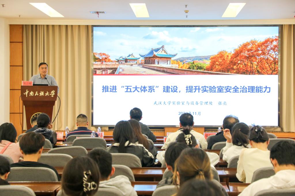毛勇杰作了題為《讓安全成為習(xí)慣》的報(bào)告,從同學(xué)們身邊的安全隱患切入,系統(tǒng)講解了高校實(shí)驗(yàn)室中安全風(fēng)險(xiǎn)的來源以及如何控制和預(yù)防。張亮作了題為《推進(jìn)“五大體系”建設(shè),提升實(shí)驗(yàn)室安全治理能力》的報(bào)告,全面介紹了武漢大學(xué)在實(shí)驗(yàn)室安全管理方面的措施和經(jīng)驗(yàn)。講座期間,兩位專家與聽課同學(xué)進(jìn)行了互動(dòng)交流,不少同學(xué)表示收獲滿滿并向?qū)<覀儽磉_(dá)了感謝。