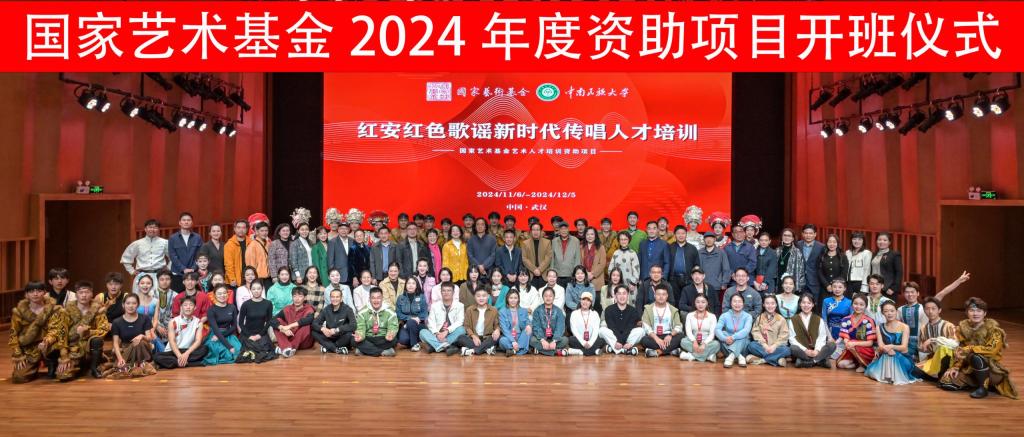 11月6日上午,國家藝術基金2024年度藝術人才培養資助項目“紅安紅色歌謠新時代傳唱人才培訓”在我校光谷音樂廳舉行開班儀式。
