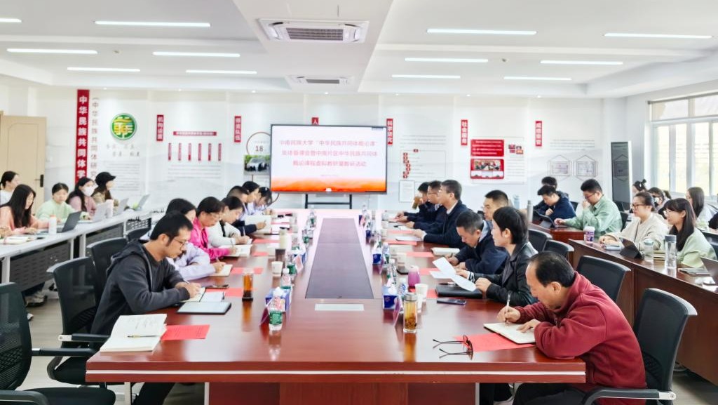 中華民族共同體學院院長李從浩介紹了中南片區“概論”課虛擬教研室成立以來相關工作情況以及學院推進“概論”課中班教學等工作進展情況。中央民族大學教師陳麗明在線上以“《中華民族共同體概論》的教材主線與問題意識”為主題,從“概論”教材的重大意義、框架主線、問題意識以及教學設計與方法四個方面進行專題講座。與會人員進行了交流分享。