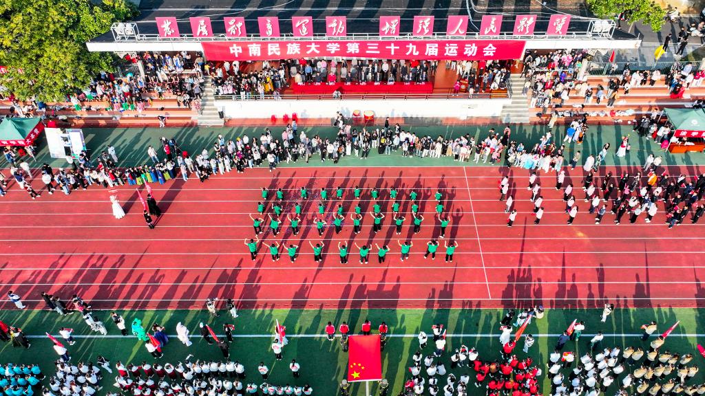 伴隨著激昂的運動員進行曲,國旗儀仗隊護送國旗率先入場。隨后,各學院和機關代表隊高舉旗幟,邁著整齊的步伐依次入場。民族學與社會學學院的同學身著拉拉隊服,帶來充滿活力的舞蹈;文學與新聞傳播學院的同學身著漢服,手持“文以載道,傳以致遠”的書法卷軸,持團扇起舞,盡顯國風典雅;資源與環境學院的同學身著環保材料制成的禮服走秀,步伐堅定自信,傳遞著“節約資源、保護環境”的環保理念;音樂與舞蹈學院的同學身著校園文化衫,載歌載舞,盡顯專業水準;國際教育學院的同學齊打武術,一招一式間展現中外文化交流成果……整齊的步伐與一場場精彩的駐停表演贏得了陣陣熱烈的掌聲。