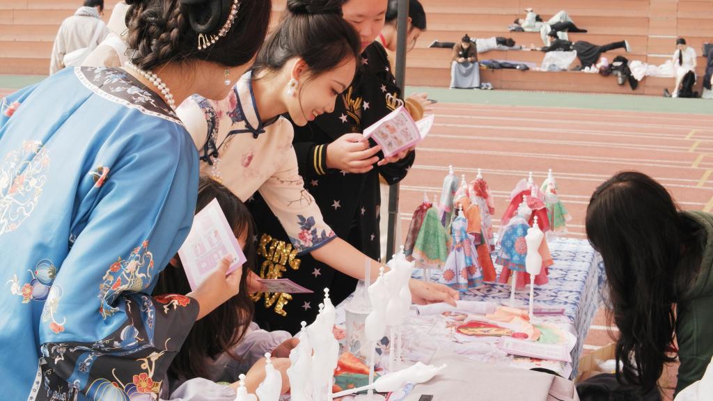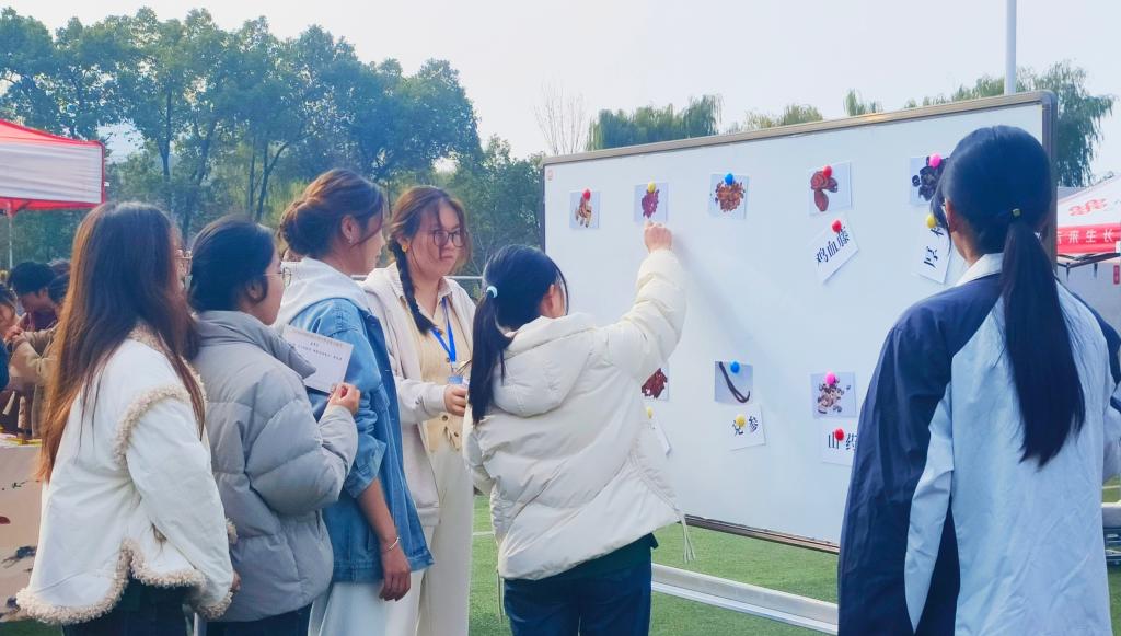 一走近南湖田徑場,便能被場上熱鬧非凡的氛圍所感染——校黨委學生工作部攜手相關學院搭建了7個獨具特色的中華文化主題體驗展臺,吸引同學們通過親身體驗來感受中華民族傳統文化的魅力。“我嘗試了古法造紙裝飾畫的制作,用干花裝飾紙漿濾成的古法畫布,特別有意思!”來自數學與統計學學院2024級的田曉蘭興奮地說道。除了古法造紙外,還有自制中藥香包、手工皂制作、自制漆扇、投壺、扎染、漢服DIY、茶藝講解……一個個精彩的活動讓人目不暇接。美術學院2022級的布日嘎介紹道:“我們學院負責的‘霓裳錦繡服飾區’,為大家帶來了扎染和漢服DIY的活動。這兩個活動都極具文化特色,能夠讓大家更好地了解中華民族傳統文化,意義非凡。”