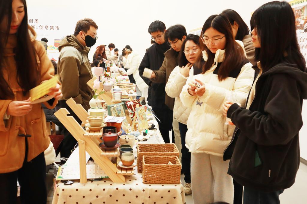 創(chuàng)意集市項(xiàng)目展現(xiàn)的文創(chuàng)產(chǎn)品琳瑯滿目,有樣式精美的剪紙作品,有別具一格的書法繪畫,還有小巧精致的飾品等等,攤位吸引了眾多師生前來參觀、選購和體驗(yàn)。相比往屆,本屆國潮活動新增了夜市和游市打卡項(xiàng)目。除了可以選購自己心儀的文創(chuàng)產(chǎn)品外,觀眾們在游市期間可以在各個攤位免費(fèi)打卡獲得一枚獨(dú)特的印章,集齊16枚印章就可以換取一份精美的“最美國潮”小禮品!