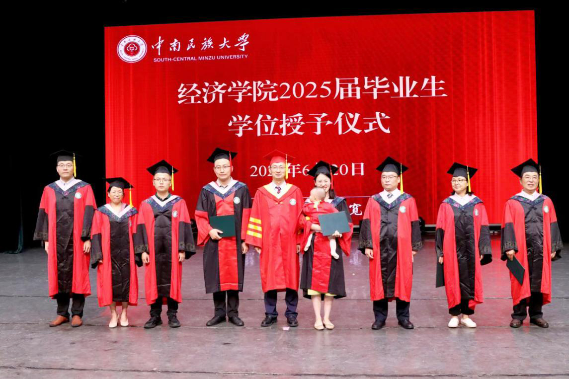 校黨委常委、副校長方德斌與經(jīng)濟學院畢業(yè)博士研究生合影。經(jīng)院供圖