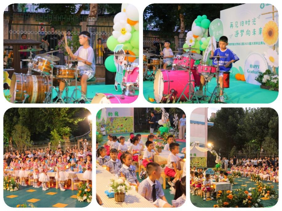 架子鼓展示、大合唱。幼兒園供圖