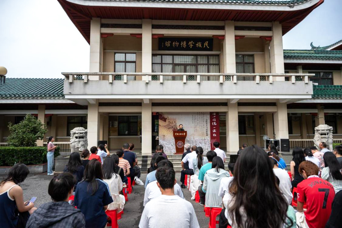 9月9日,在中國人民抗日戰(zhàn)爭暨世界反法西斯戰(zhàn)爭勝利80周年之際,“同心同德一戎衣——文化名人與民族精神”特展在我校民族學(xué)博物館開幕。本次展覽由北京市文物局、北京博物館學(xué)會、中共北京市西城區(qū)委宣傳部與我校聯(lián)合主辦,“8+”名人故居紀念館聯(lián)盟與民族學(xué)博物館共同承辦,旨在回顧抗戰(zhàn)歷史,緬懷先烈,弘揚民族精神,展示文化名人在抗戰(zhàn)中的杰出貢獻。