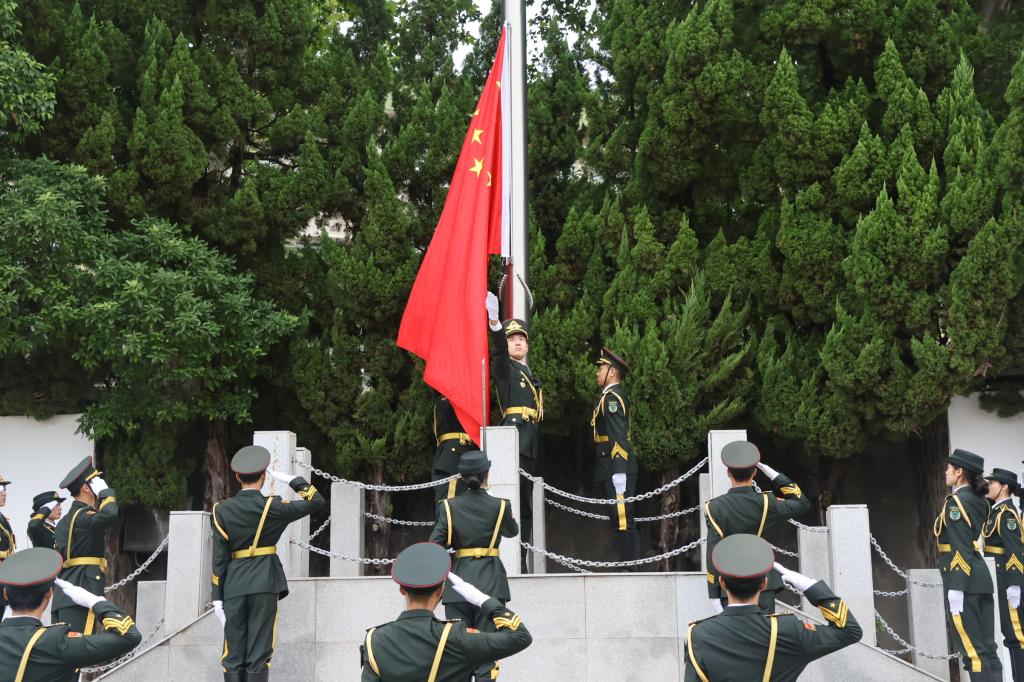 升旗現(xiàn)場莊嚴(yán)肅穆。蔡博軒攝