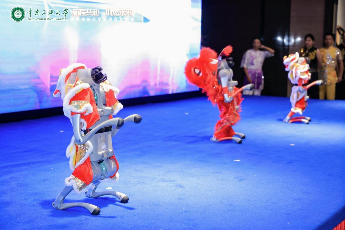換屆大會后,盛大的歡迎晚會隨之開始??萍几惺愕臋C器狗“舞獅”表演引爆全場,傳統與現代的碰撞贏得了滿堂喝彩。隨后,校友武術隊剛柔并濟的武術表演,音樂舞蹈學院師生優美動人的歌舞,以及深圳高校校友平臺藝術團的精彩合唱,將現場氣氛一次次推向高潮。