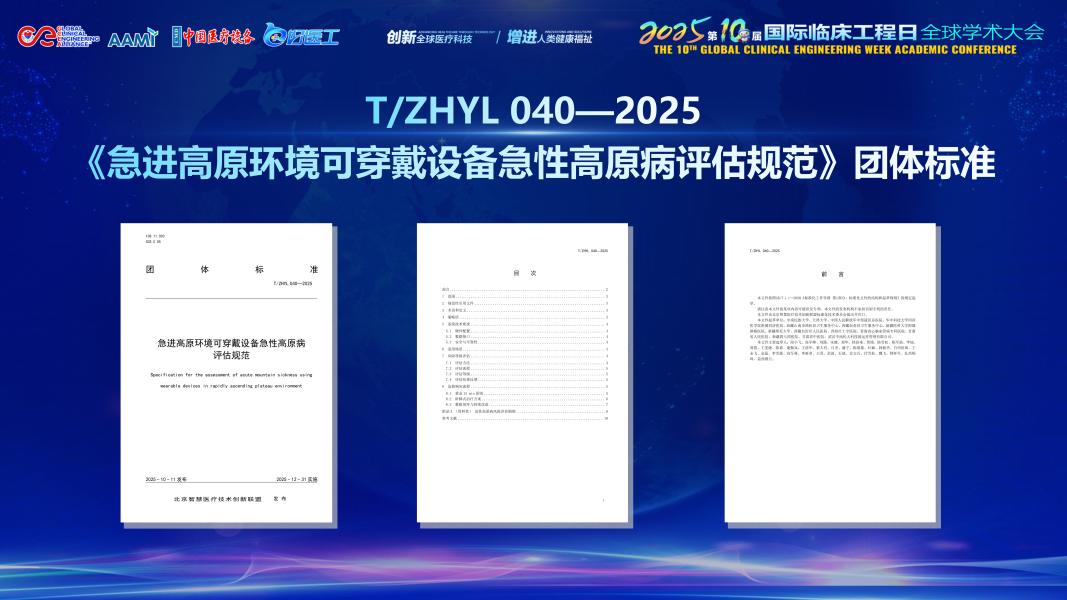 10月18日,第六屆國際臨床工程與醫(yī)療技術(shù)管理大會(huì)暨第十屆國際臨床工程日全球?qū)W術(shù)大會(huì)在深圳開幕。在為期3天的會(huì)議中,與會(huì)專家對(duì)我校生物醫(yī)學(xué)工程學(xué)院牽頭制定的T/ZHYL 040—2025《急進(jìn)高原環(huán)境可穿戴設(shè)備急性高原病評(píng)估規(guī)范》團(tuán)體標(biāo)準(zhǔn)給予高度評(píng)價(jià),并提出了建設(shè)性意見。