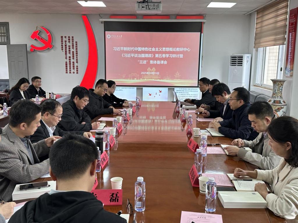 10月31日下午,馬克思主義學院舉行《習近平談治國理政》第五卷學習研討暨“三進”集體備課會,推動黨的創新理論生動進課堂、扎實進頭腦。校黨委常委、副校長馬玉堂,本科生院教務辦公室主任耿亮,學院領導班子成員、各系主任及習近平新時代中國特色社會主義思想概論教研中心全體教師參加,中心主任易新濤主持會議。