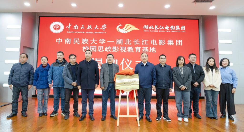11月18日下午,我校與湖北長江電影集團在學術交流中心舉行校企共建校園思政影視教育基地簽約揭牌儀式。湖北長江電影集團黨委書記、董事長朱雨龍,湖北長江電影集團黨委副書記、總經理謝云以及湖北銀興院線相關負責人,我校黨委書記徐業勤,黨委常委、副校長馬玉堂,相關職能部門負責人和師生代表共同出席儀式。儀式由馬玉堂主持。