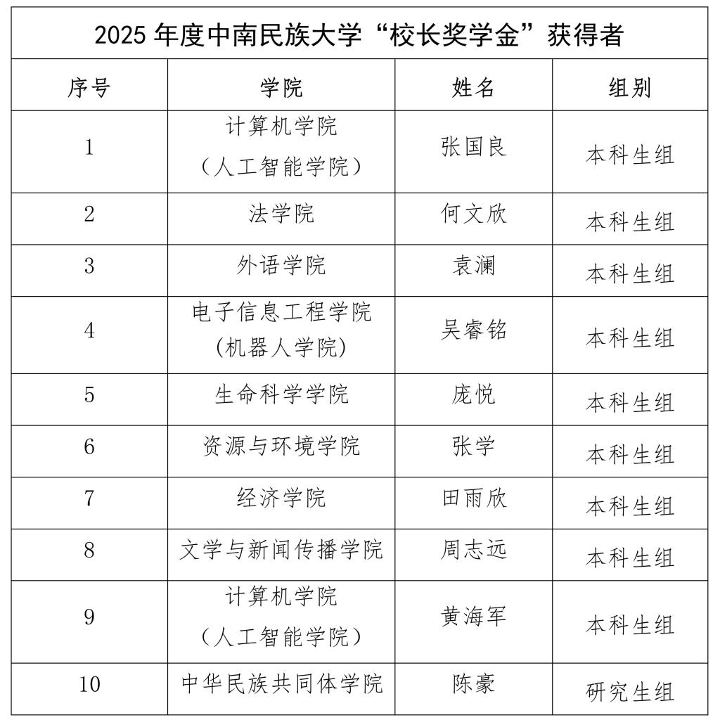 綜合網絡投票和現(xiàn)場得分,2025年度校長獎學金獲獎情況如下: