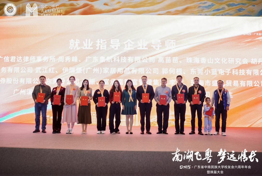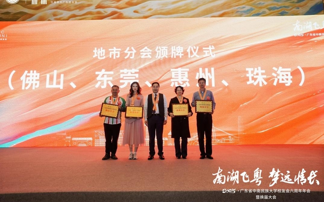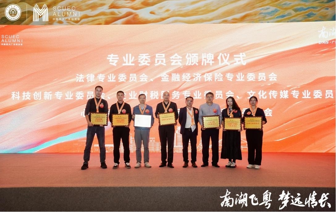 大會還進行了會旗交接,并新增佛山、東莞、惠州、珠海4個地市分會,設立了4個校友之家與3個聯絡點。同時,新一屆理事會創新設立法律、金融經濟保險等7個專業委員會,以“校地聯動、產學協同”模式,精準對接校友與母校發展需求。此外,大會還為新一屆理事會成員頒發聘書,并表彰了為校友會發展作出突出貢獻的校友代表。會前還舉辦了《我與校友會的點點滴滴》的主題分享和校友產品展示。