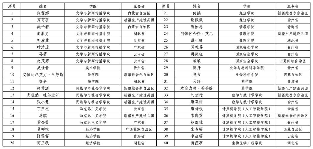 此外,全國大學(xué)生志愿服務(wù)西部計劃項目管理辦公室公布了2024—2025年度大學(xué)生志愿服務(wù)西部計劃考核等次優(yōu)秀志愿者名單,我校40名青年學(xué)子名列其中。