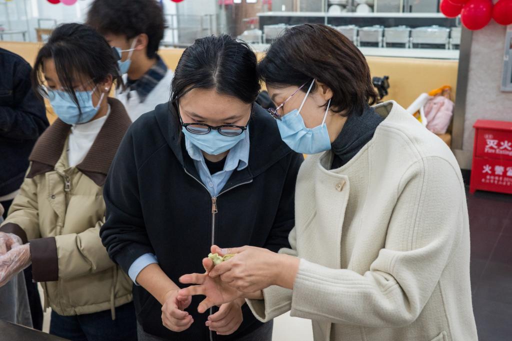 座談會的余溫未散,食堂餐廳里已飄起餡料的香氣。揉面、搟皮、包餡,師生與后勤工作人員分工協作、默契配合,一張張餃子皮在大家手中變成圓潤飽滿的餃子,食堂內洋溢著溫馨歡樂的節日氛圍。當熱氣騰騰的餃子端上桌,同學們圍攏的笑臉上,映著的是勞動的成就感,更是“校園即家”的歸屬感。“和大家一起包餃子,就像回到家一樣。”彭喆同學的感慨成了這個冬至最柔軟的注腳。