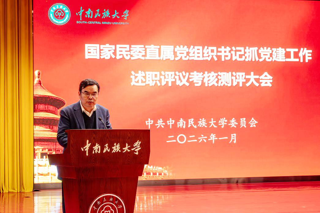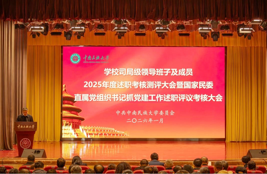 1月14日下午,按照國(guó)家民委黨組、湖北省委關(guān)于2025年度考核工作的統(tǒng)一部署,學(xué)校召開(kāi)司局級(jí)領(lǐng)導(dǎo)班子及成員2025年度綜合述職考核測(cè)評(píng)大會(huì)暨國(guó)家民委直屬黨組織書記抓黨建工作述職評(píng)議考核大會(huì)。國(guó)家民委人事司領(lǐng)導(dǎo)、全體在校校領(lǐng)導(dǎo)、校黨委常委、各單位黨政主要負(fù)責(zé)人、其他正處級(jí)干部、正高級(jí)職稱專業(yè)技術(shù)人員、教代會(huì)代表參加會(huì)議。會(huì)議由校黨委副書記、校長(zhǎng)劉義主持。