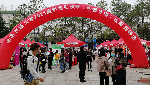 秋意漸濃,2021屆畢業生迎來了今年的招聘季。為切實做好畢業生就業工作,大力構建畢業生與用人單位的交流平臺,10月17日上午,我校2021屆畢業生秋季(中型專場)校園招聘會在學生一、二食堂間廣場舉行。30余家企業參與此次活動。副校長杜冬云、各學院學生工作負責人及畢業班輔導員、相關職能部門負責人來到會場,指導畢業生求職應聘。