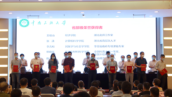 湖北名師工作室主持人、國家民委教學名師、經濟學院王祖山教授作為受表彰代表發言。他認為,作為一名教師,不忘初心就是要牢記“樹人”使命。他從樹什么樣的人、新時代高校教師應當何為兩個方面分享了自己數十年教書育人的感受。