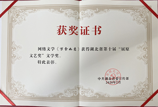 生科學院薛璐老師的文學作品《萬食如意》榮獲“屈原文藝獎”。黨委宣傳部供圖