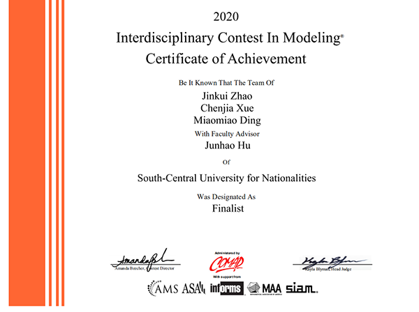 附:我校參加2020美國大學生數學建模競賽獲獎情況