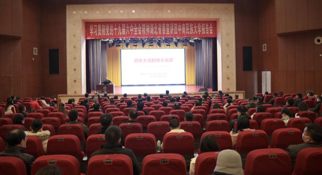 學習貫徹黨的十九屆六中全會精神湖北省委宣講團走進我校。劉虹 攝