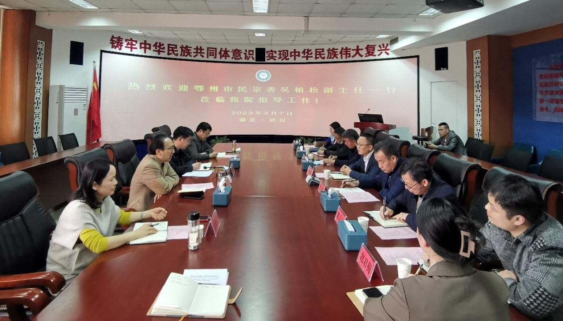 3月7日下午,鄂州市民宗委調研組副主任吳柏松等一行9人來我校調研鑄牢中華民族共同體意識工作情況,并與我校中華民族共同體學院班子成員進行座談。